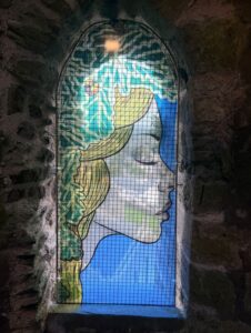 For this installation, original artworks have been reimagined as transparent, stained-glass–inspired pieces, printed onto plexiglass. Set within the Round Tower’s nine windows, each work offers a distinct vision of Brigid, embodying her power, resilience, and kindness. As daylight filters through, the images become illuminated, transforming the Round Tower into a radiant beacon of inspiration and compassion.